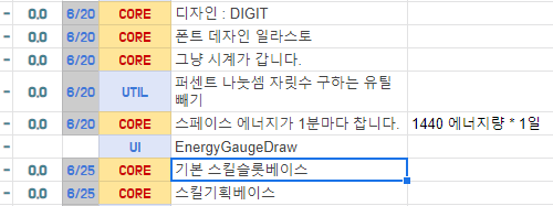 스킬구현과 간단한 UI재구성, 업적구성과 남은 미적용 스킬들을 적용하고, 중요한 '오프라인획득'과 '출석 시스템'을 모듈형으로 구현합니다.